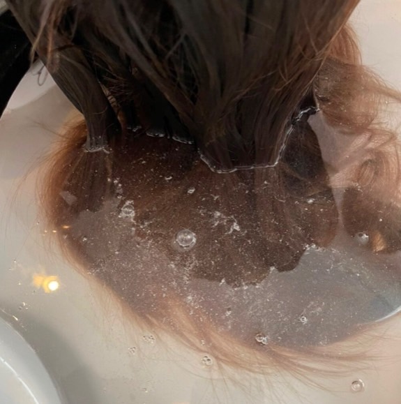 ヘッドマッサージ後、フェイスラインからお湯を掛け流しながら頭全体をお湯で包み込む極上の至福リラックスタイム。
